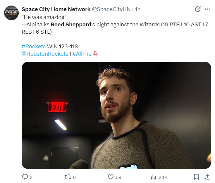 申京赛后谈到谢泼德此役的表现,申京说:谢泼德实在是太棒了,攻防两端都对球队有巨大的贡献。